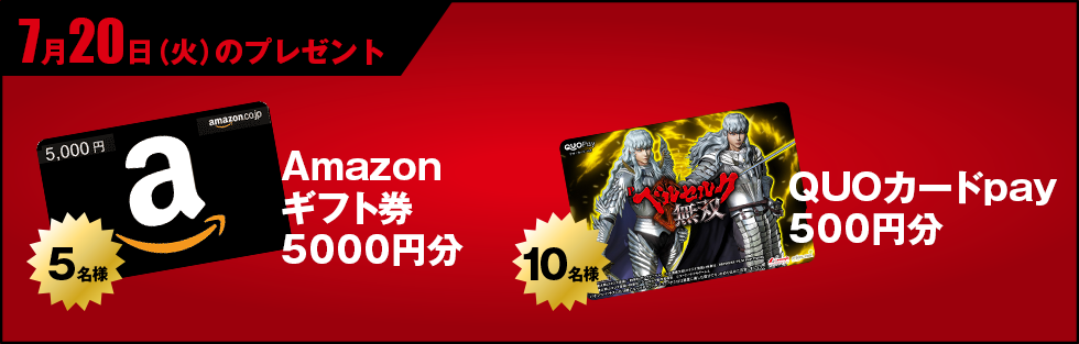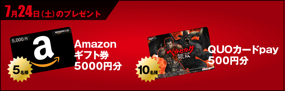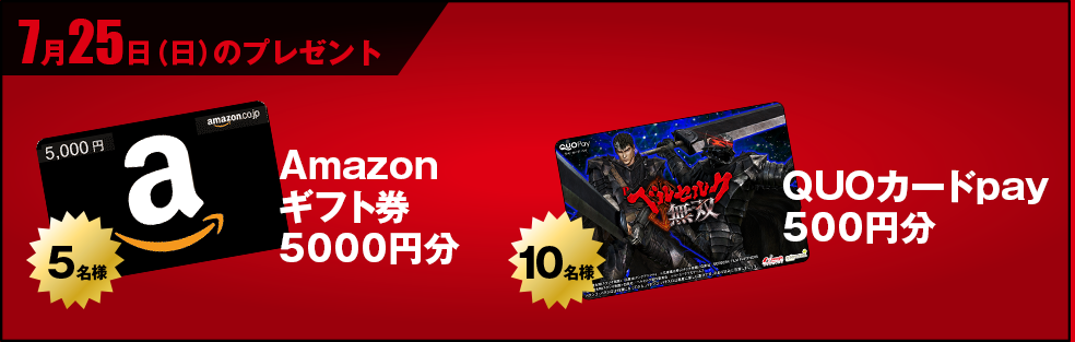Amazonギフト券(Eメールタイプ)5000円分(35名様)、オリジナルQUOカードPay500円分(70名様)